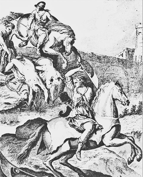 АМАЗОНКИ. Племя мифических женщин-воительниц в Малой Азии, происходящее от Ареса и Гармонии. Их имя означает искаженное «безгрудые» — имея в виду обычай выжигания у девочек правой груди для более удобной стрельбы из лука. В определенное время года они вступали с мужчинами в брачные отношения ради продолжения рода, но оставляли себе только девочек. В греческой мифологии против дев-воительниц сражались Беллерофонт, Геракл, Тесей; последний увез из захваченного города амазонок их царицу Антиопу. Существовало предание, что самая тяжелая битва Александра Македонского была именно с амазонками; согласно другой версии, царица воительниц присоединила свое боеспособное племя к армии Александра. В Троянской войне амазонки сражались против греков; только Ахилл смог победить богатыршу Пенфесилею, после чего скорбел, пораженный ее красотой. Античное искусство оставило нам богатую коллекцию древних феминисток: от сцен амазономахии (борьба греков против воительниц) на рельефах саркофагов, святилищ, храмов до скульптурных римских копий с работ Фидия, Поликлета, Кресилая.